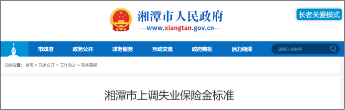 03 湖南湘潭:9月起上调失业保险金发放标准